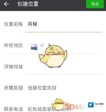 点击后就会出现下图所示的界面,点击一下“完成”,你要自己定位的位置就创建完成了