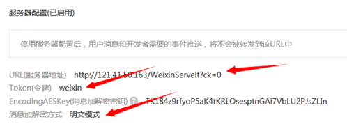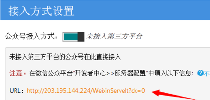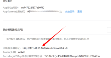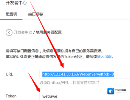 然后在微信机后台填写对方的微信公众平台开发者中心原有的URL