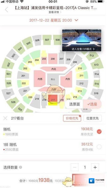 5、进入VR模式后,移动手机,就可以看到所选座位的全景图。
