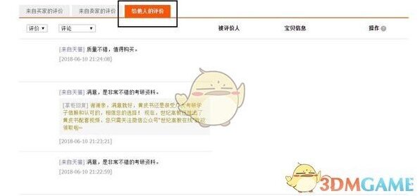 3、接下来,在评价管理页面中,点击“给他人的评价”选项,即可查看到给商家的评价,即评论。