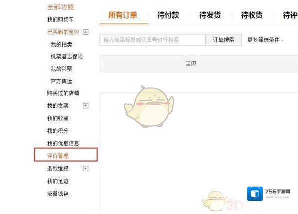 3、进入“我的淘宝”界面,点击“评价”进入“评级中心”。