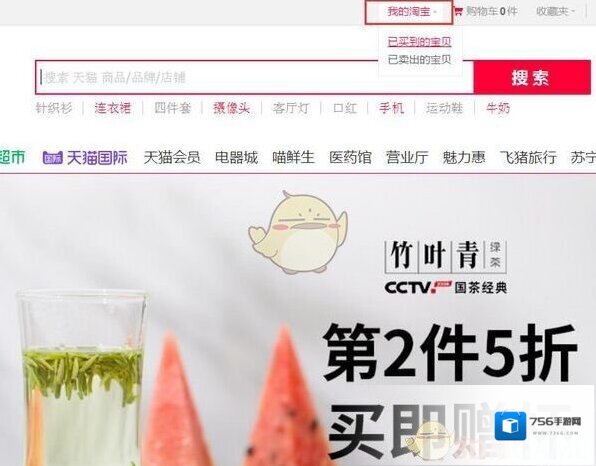 1、打开天猫商城页面,使用淘宝账号登陆成功之后,点击“我的淘宝-已买到的宝贝”菜单。