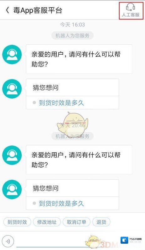 6、在毒APP客服平台中 – 右上角点击“人工客服” – 跟人工客服说明要取消哪个订单即可(毒APP取消订单是有相应规则的,在“如何取消订单”中的问题描述有写明规则)。