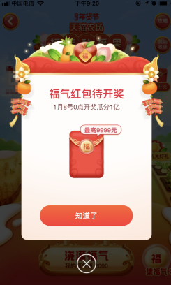 6、然后等待1月8号开奖瓜分1亿红包哦。