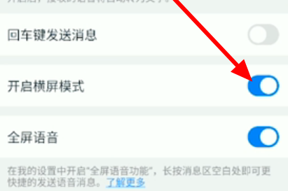 5、找到“开启横屏模式”,然后打开开关即可。