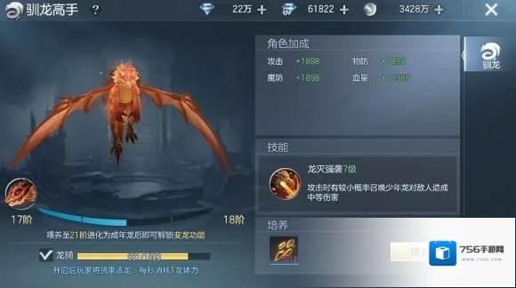 少年龙:11-21阶,龙骑功能解锁,21阶可进化