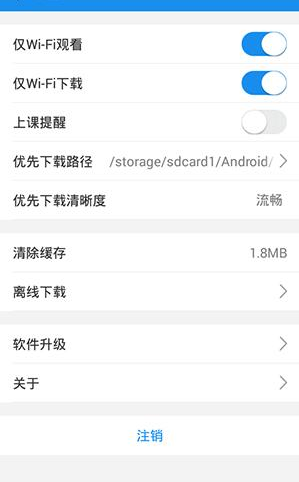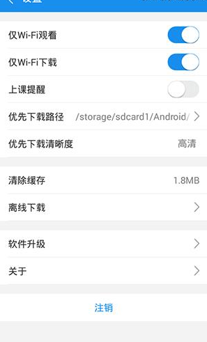 5、在返回到设置界面中就能看到优先下载清晰度旁的模式发生了变化,以后如果要下载课程就会下载这个清晰度的课程视频。