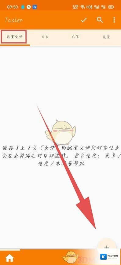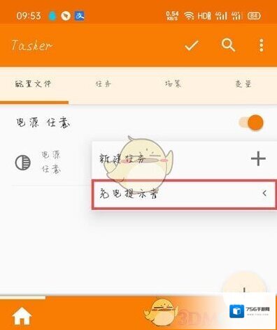 3、打开手机中的Tasker软件,在首页切换到任务一项,点击右下角的+新建按钮,新建任务;