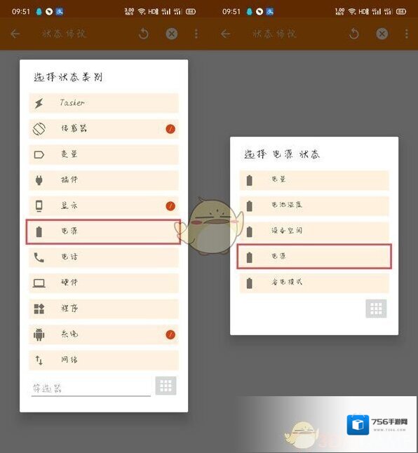 14、选择需要修改的状态类型为电源,再次在弹出的界面中选择电源;