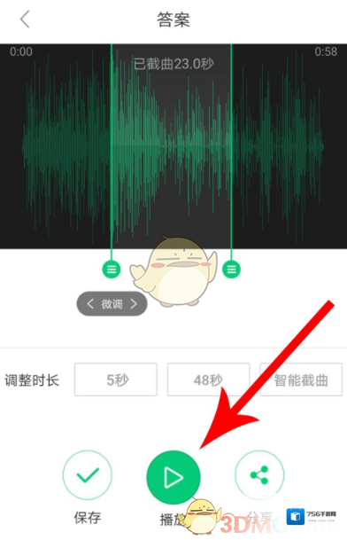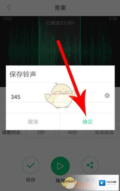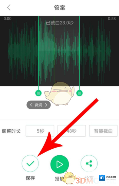 7、铃声截取完毕后,点击右下角“保存”按钮