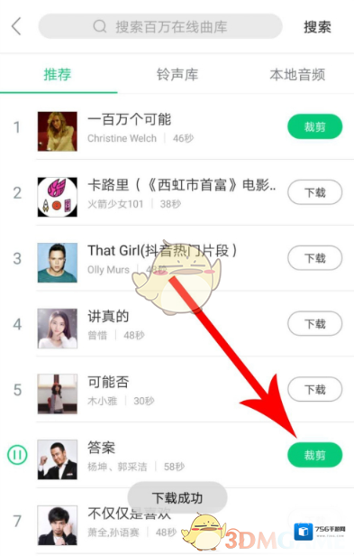 4、铃声下载完成后,原来的“下载”按钮就会变成“剪辑”按钮,点击此“剪辑”按钮