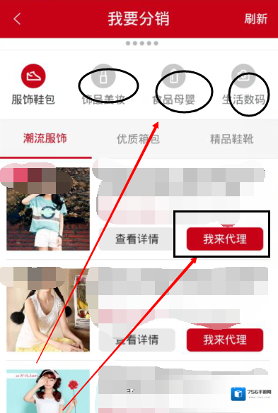 5、在精选爆品里,找到自己喜欢的,有服装,母婴,生活数码。然后点击“我来代理即可”。