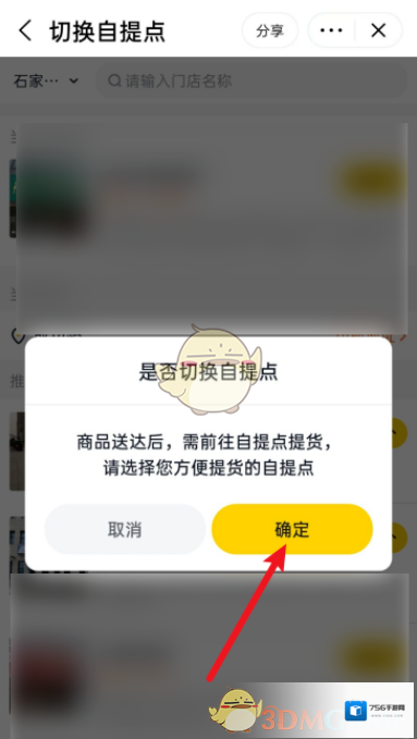 4、弹出是否切换自提点提示,点击“确定”就可以了。