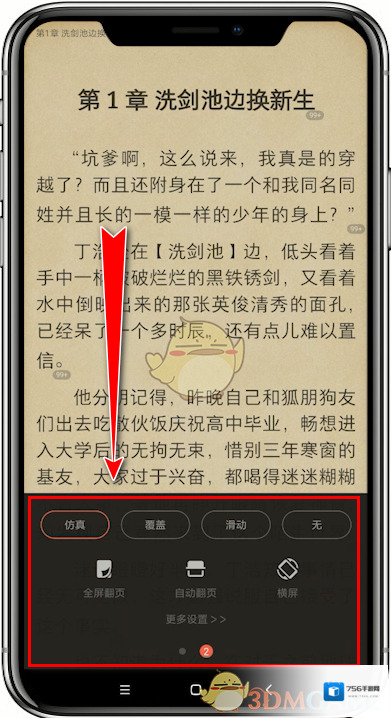 5、进入翻页效果设置界面后,你就可以设置翻页效果、自动翻页以及横竖屏等。