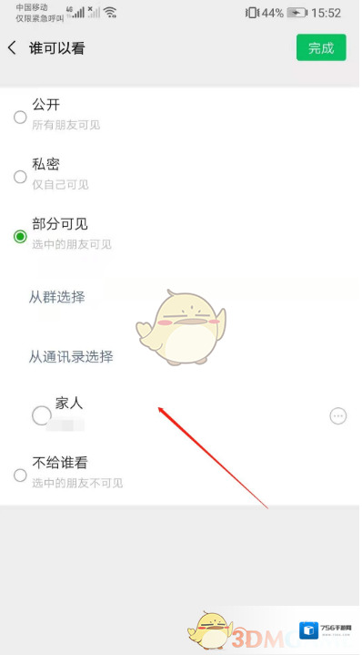 7、然后点击部分可见,在下拉中选择你设置的标签,点完成,就可以了。