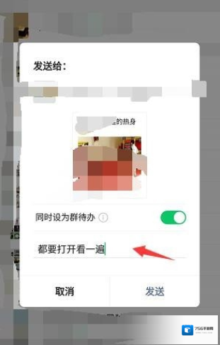 3、打开这个按钮,然后下面留言写上内容,点击发送即可。如下图: