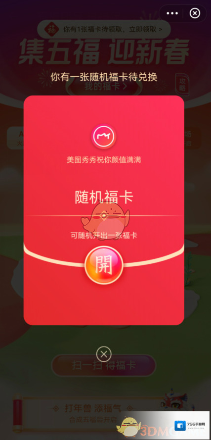 5、在开启后,我们就可以返回支付宝的集五福活动,快速开启福字咯~