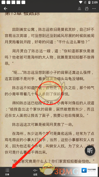 7、同样我们再次点击屏幕中心,然后点击左下角的“目录”。