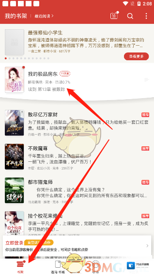 4、我们回到软件中,并在“书架”中点击我们正在阅读的小说。