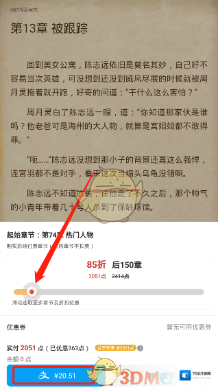 6、这时候我们就需要选择下载的章节。(注:大部分的小说是需要付费才能够下载)