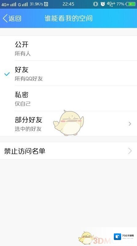 5、最后进入谁能看我的空间设置界面,点击“私密”即可。