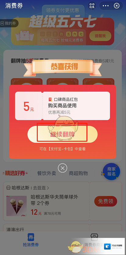 3、每位用户有三次翻牌机会,可以获得不同的消费券