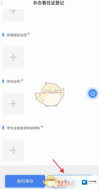 6、进入补办暂住证登记,提交相关资料,点击右下角的确认提交完成