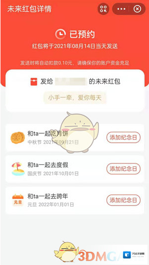 4、当出现如下页面即为预约成功,到时平台会自动扣钱为大家发送红包,所以请提前确认自己的余额信息。
