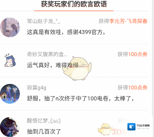 7、最后就是玩家们抽中的记录,获奖感言等: