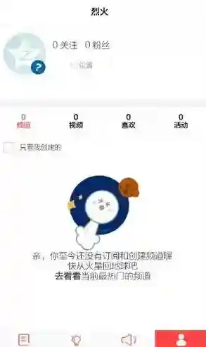 4、在个人界面,你可以查看您的个人频道,视频,喜欢的,还有活动的。