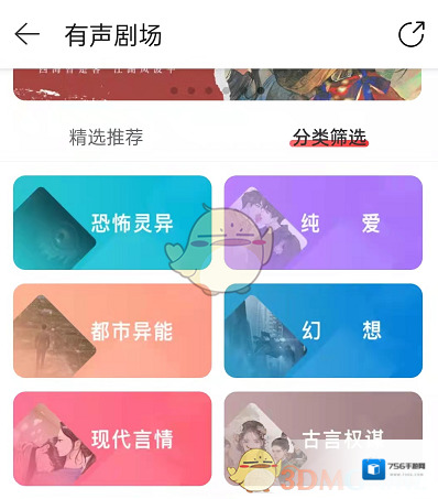 4、点击分类筛选,就可以看到各种类型的小说,选择自己喜欢的听即可。