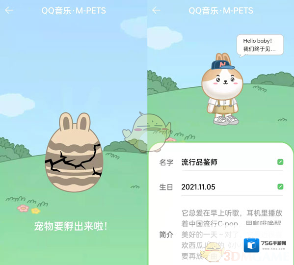5、等待动物孵化动画结束后,即可获得音乐宠物,如果对当前宠物不满意可再次点击不喜欢?重新抽取再次听音乐孵化宠物;