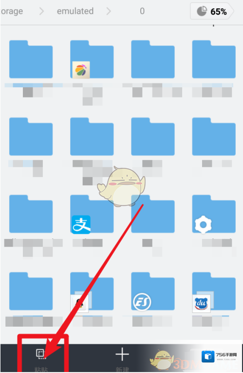 6、之后返回到软件的手机储存中,选择好你想要进行保存的文件夹后,点击下方的粘贴按钮。软件就会自动将文件下载到你所指定的文件夹中。