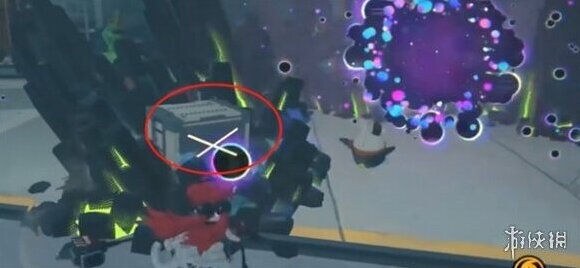 2、接着击败路上的怪后,来到转台的左边点击扳手,当转台移动后可以来到这里找到第二个小卡格车。