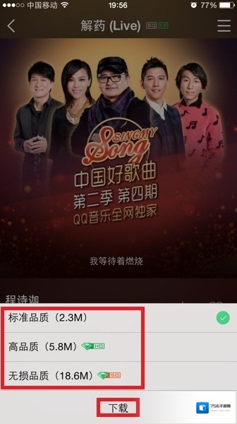 7、点击之后可以选择你想下载的音乐品质,注意,是要绿钻才可以的,普通用户只能下载标准。