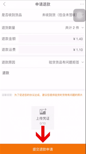 5、按照实际情况填写好退货金额、退款说明等信息,然后点击提交退货退款申请即可;