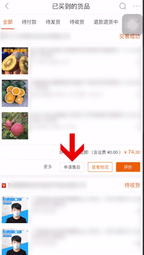 6、如果是已经收到货的订单,在下方点击申请售后,