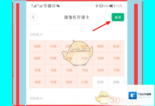 5、进入后,可以看到摄像头录制监控的时间段,点击右上方的编辑。