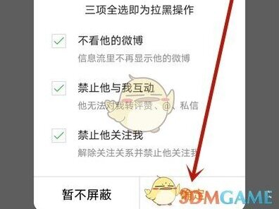 3、在屏蔽设置页面点击添加屏蔽用户。