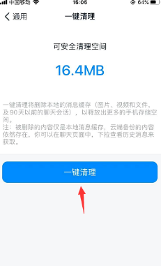 2、在通用页面最下方就可以看到 一键清理,