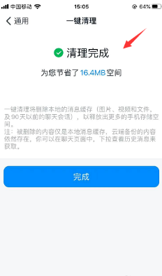 4、然后页面就会显示提醒你清理完成,已节省空间。