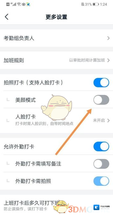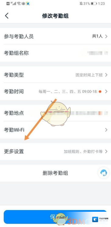 5、进入到“修改考勤组”界面,点击“更多设置”。