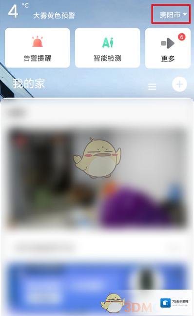 1、打开“萤石云视频”,在页面右上角点击“杭州市”所在区域。