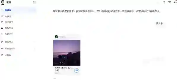 小编调查后发现,豆包可以用来听歌,它拥有MUSE音乐电台工具,我们输入歌名之后,豆包就可以播放对应的歌曲,也可以指定歌手的音乐随机播放。
