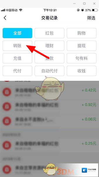 5、这里就可以看到交易记录了,还可以点击“筛选”。