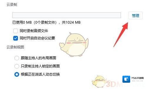 6、如果使用的是云录制,可以点击云录制下的“管理”
