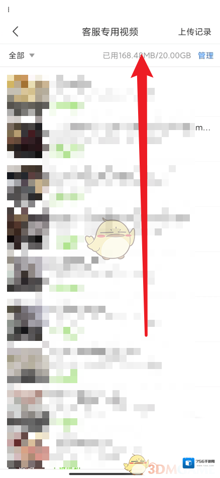 4、在这里就可以看到已使用的视频占用空间情况,点击管理可以删除。