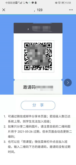 5、将班级二维码分享给需要邀请的同学,让同学微信扫码进入班级即可。