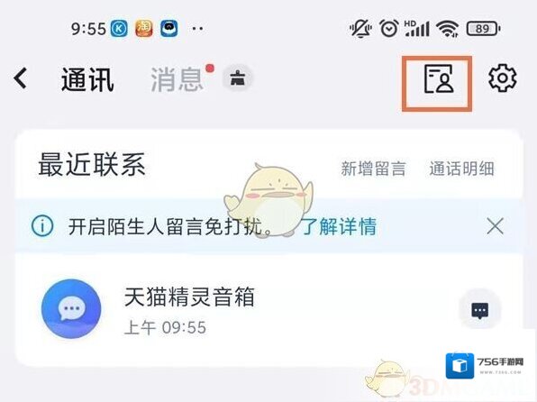 1、打开天猫精灵app,在天猫精灵主页点击通讯录图标。