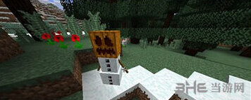 2.然后在雪的上方放上南瓜头,这样雪傀儡就会自动生成了!